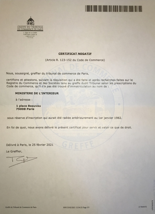 MINISTERE DE L’INTERIEUR HOTEL DE BEAU PARIS 8 75800 PARIS CEDEX |